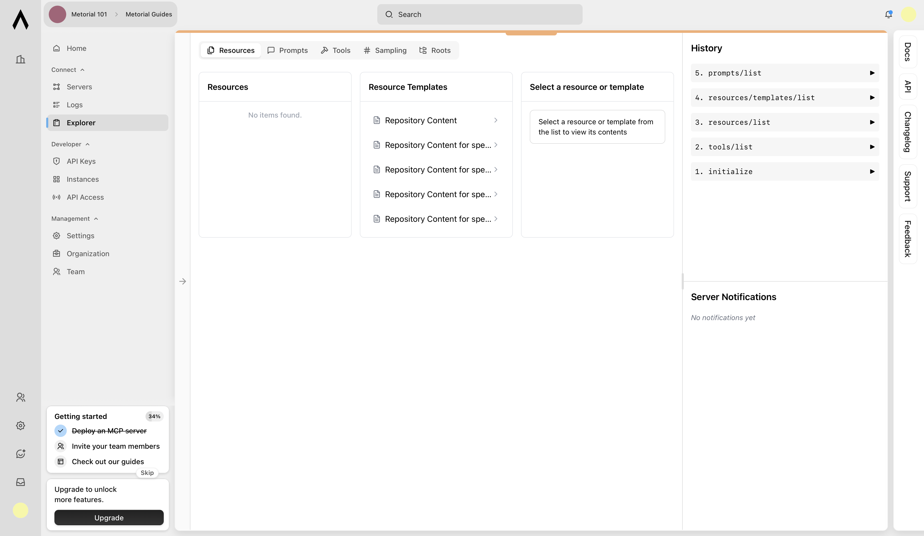 Click the Open Explorer button to open an interactive tool that lists all the MCP servers capabilities. capabilities.